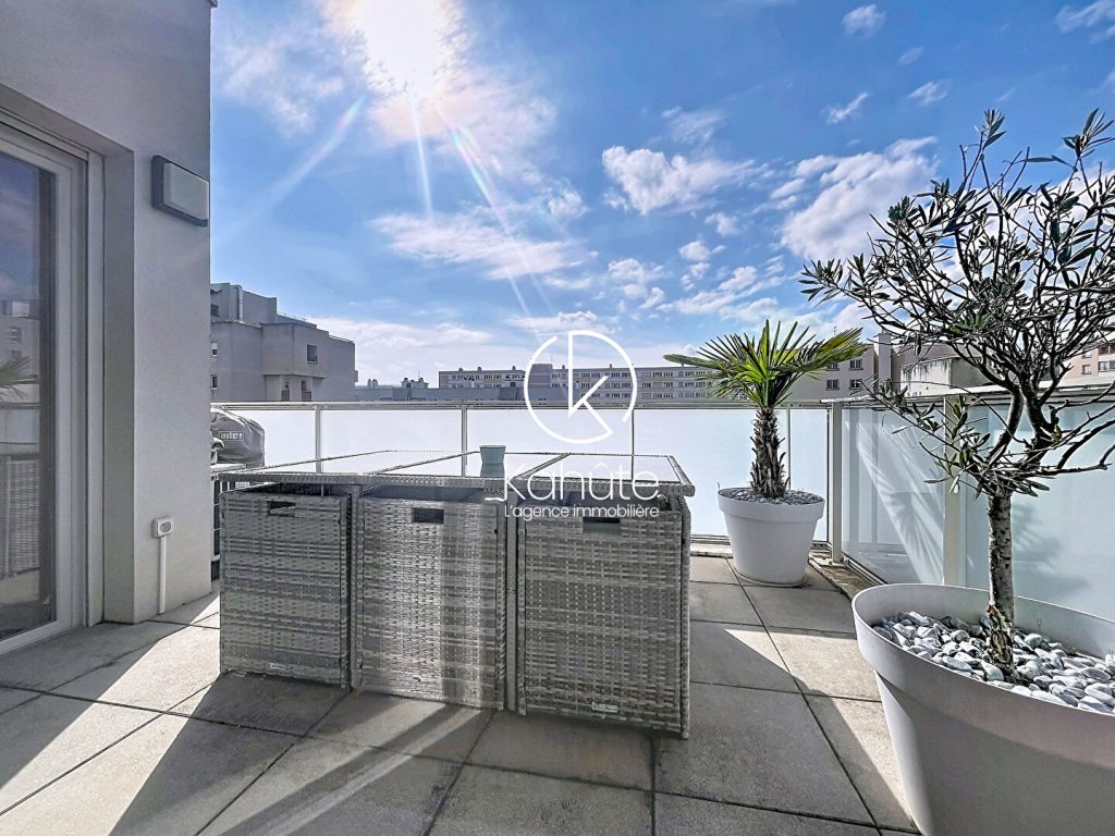 L’espace de vie s’ouvre sur une superbe terrasse de 12 m², exposée sud-ouest et équipée d’un store banne électrique, idéale pour vos repas en extérieur ou vos moments de détente.