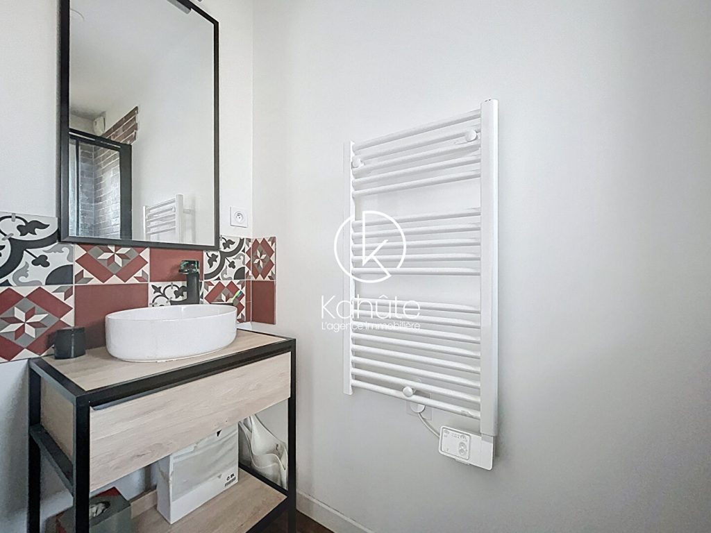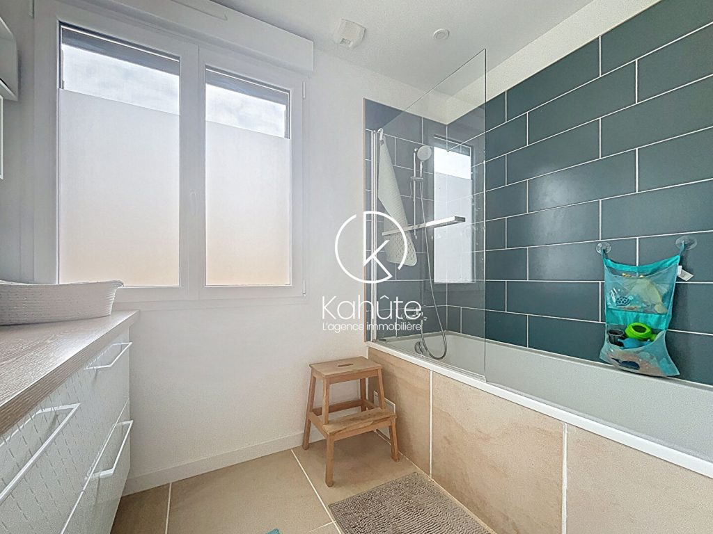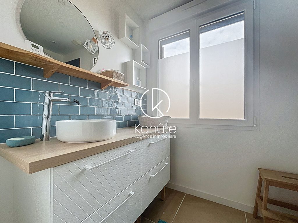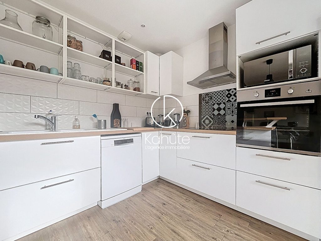 La cuisine ouverte, aménagée et équipée, s’intègre parfaitement à l’espace et favorise convivialité et partage.