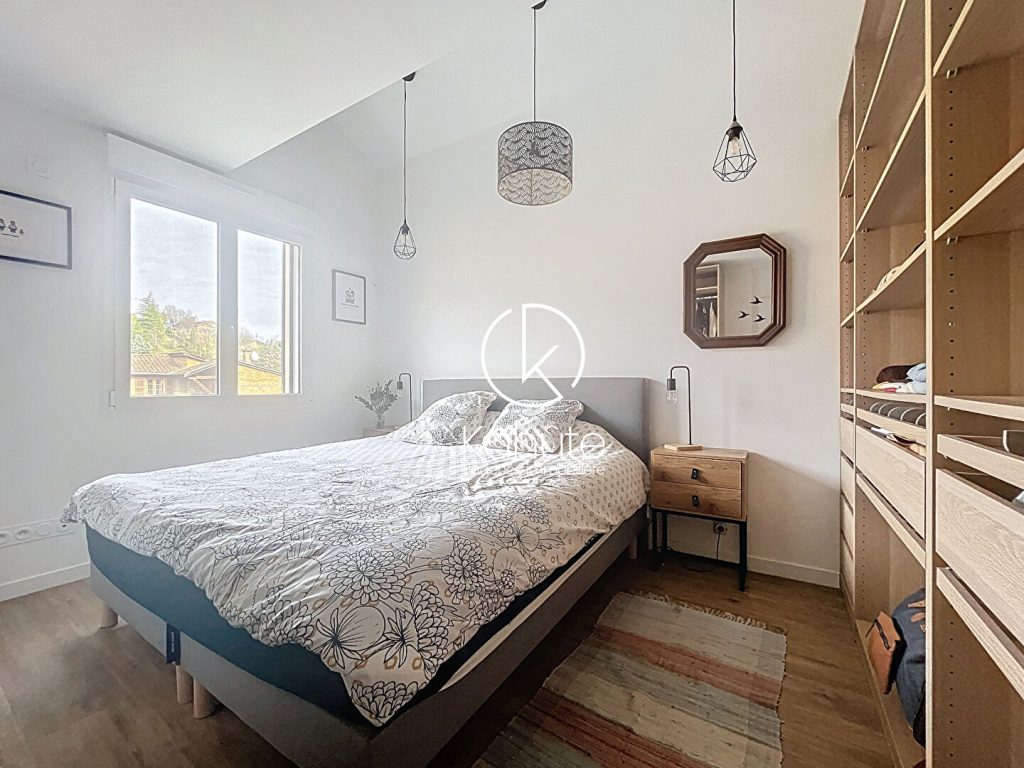 Un véritable cocon sous les toits, avec un bel espace chambre, salle de bain, WC, espace dressing.