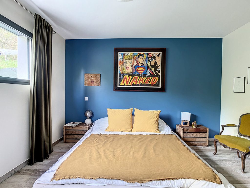 Un premier espace nuit est constitué d’une grande suite parentale avec un dressing sur mesure, sa salle de bain et Wc puis d’une seconde chambre avec accès sur l’extérieur, d’une salle d’eau et Wc.