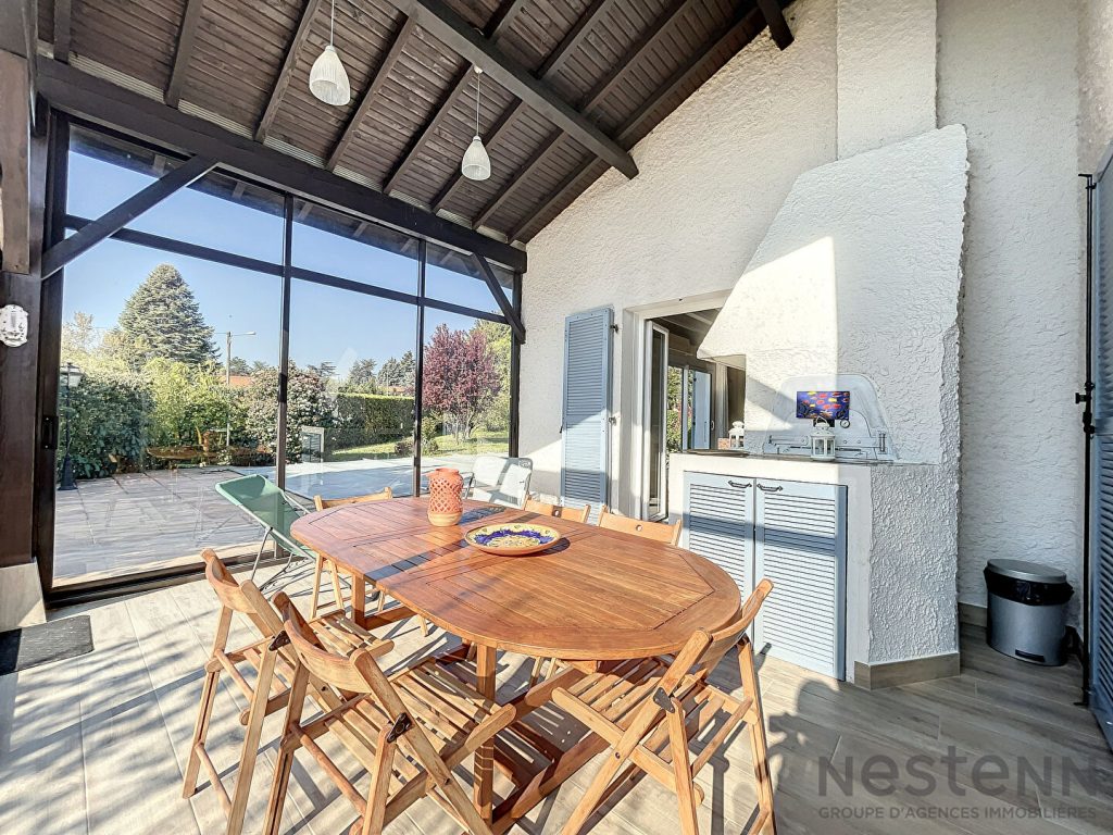 L’agence Kahûte vous propose, sur la commune très prisée de de Saint Cyr au Mont d’Or, au calme, une belle maison individuelle de 163m2 édifiée un joli terrain arboré de 1456m² agrémenté d’une piscine piscine 9 X 5m.