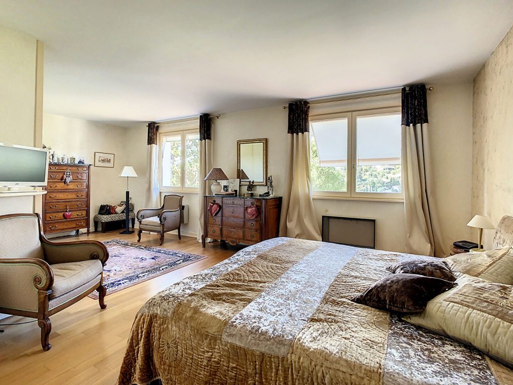 A l’étage vous aurez, sur un palier intermédiaire, une première chambre, puis au niveau supérieur, une belle salle d’eau avec Wc, deux chambres et une suite parentale de plus de 35 m2 avec sa salle de bain indépendante.